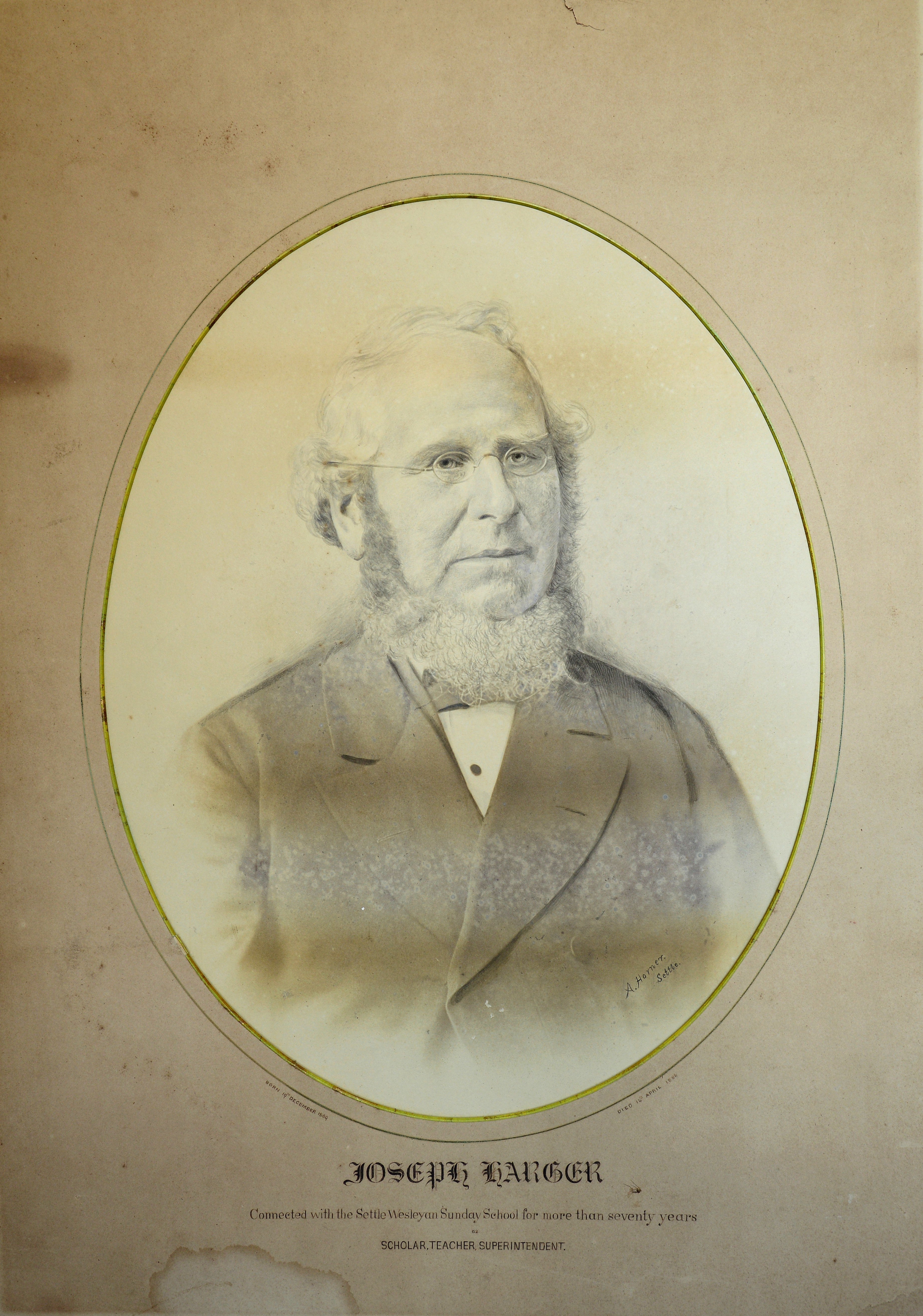 - Joseph Harger (1809-1886) was connected with the Settle Wesleyan Sunday school for more than 70 years; see photo inscription